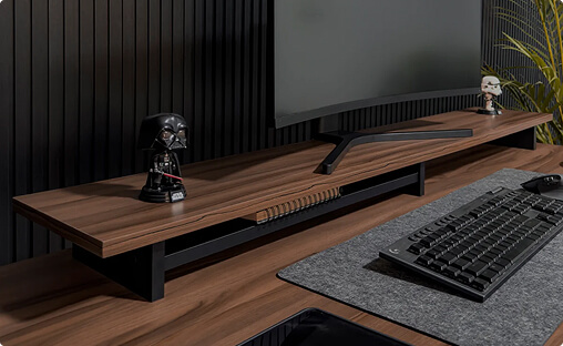 Nuestra encimera para monitores mejora la productividad, la comodidad, la ergonomía, reduce la fatiga visual, ahorrar espacio, mejorar la estética y aumentar la organización de tu espacio de trabajo.
